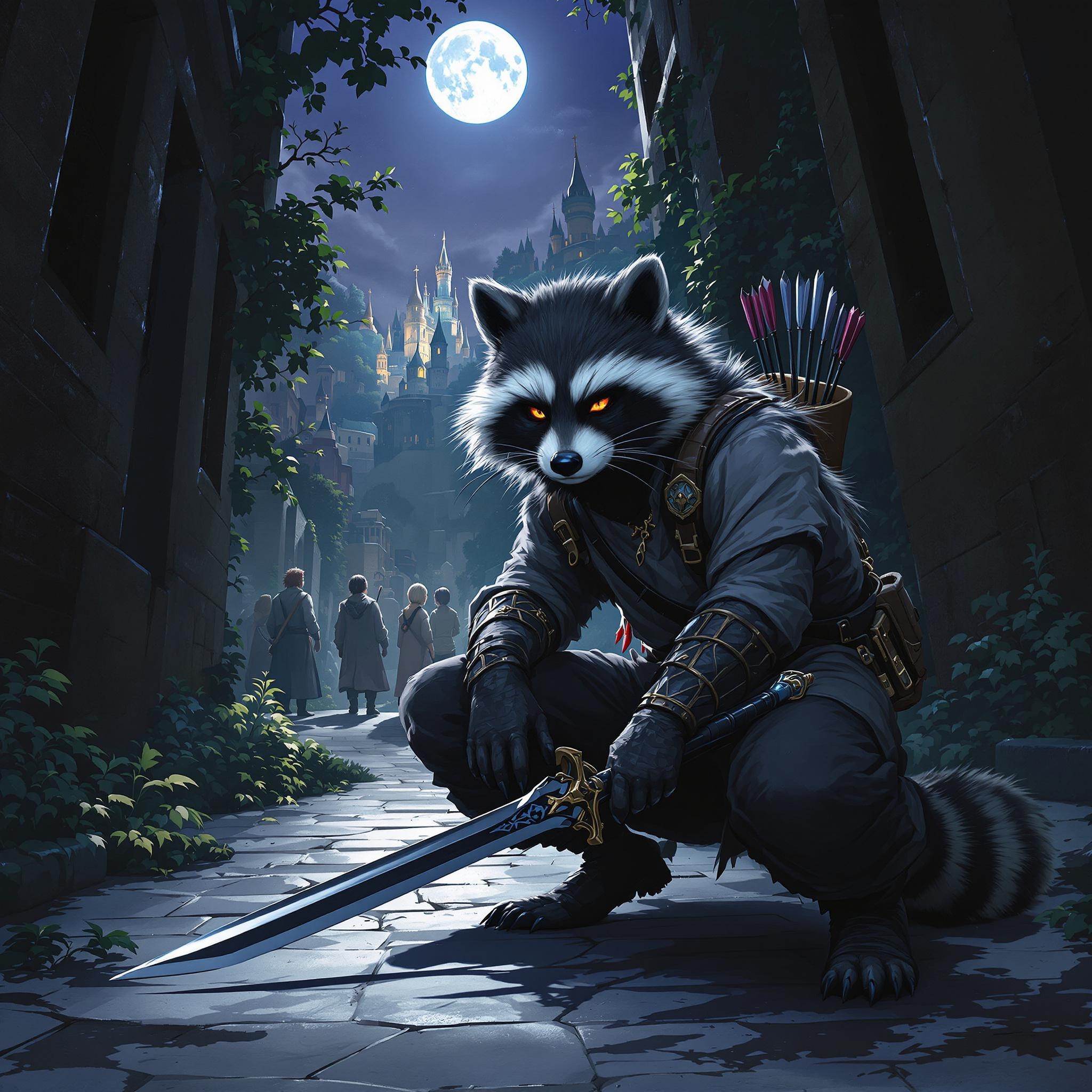 Ribeye Alamode, a 24-year-old gray-skinned, brown-eyed human urchin, embodies the spirit of survival in a bustling city. A skilled but self-doubting warrior, he wields a rapier and a buckler, navigating shadows with streetwise agility, driven to help those who help him while seeking to prove his worth.