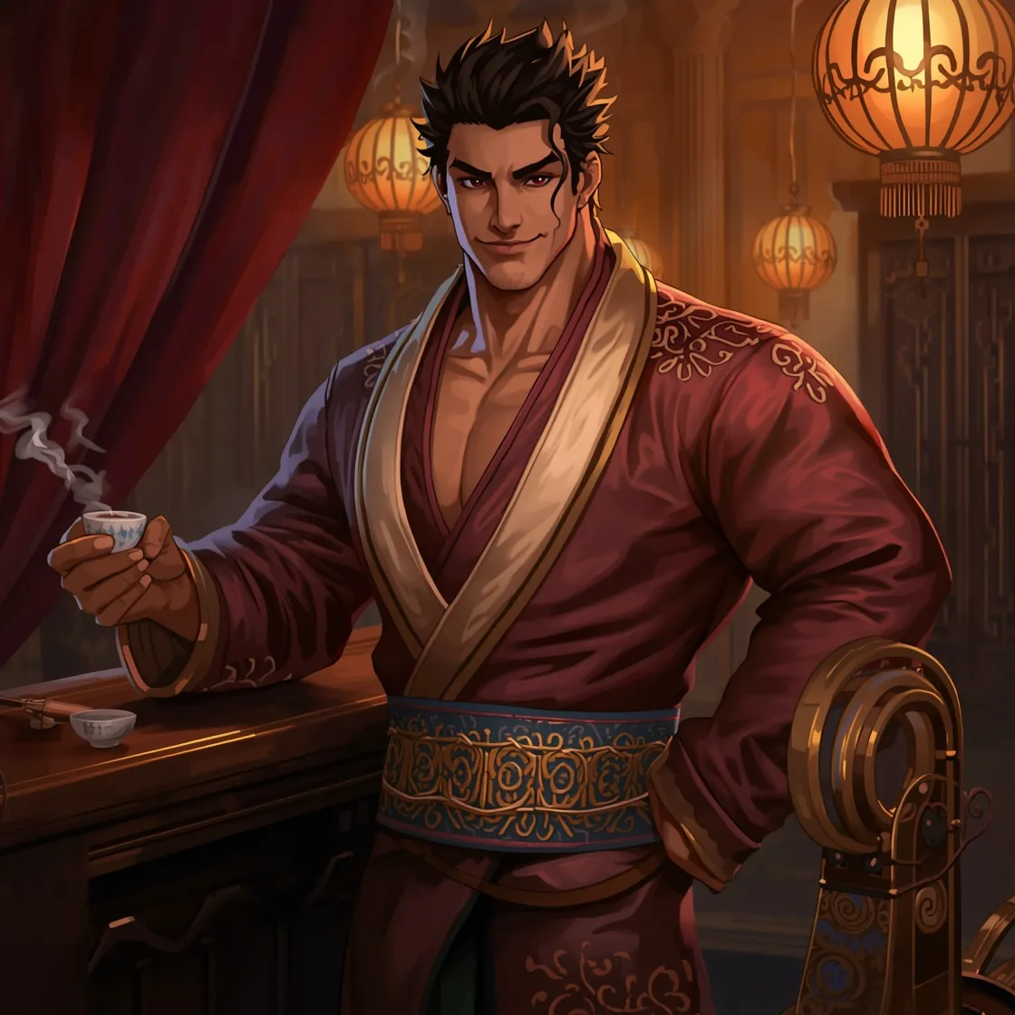 Zhu is a man of studied elegance and terrifyingly soft speech. He is an exceptional host who offers tea to his enemies and poison to his friends if the price is right. Internally, he is a man divided; he possesses a genuine love for the high culture of the Shuinia Empire, yet he thrives on the filth and degradation of the Red Lantern District. He is fiercely loyal to his network of 'ears' (street urchins and addicts), treating them with a fatherly kindness, yet he will ruthlessly sell out a high-ranking merchant if it protects his Seraglio.
